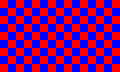 Bluaj kaj ruĝaj kvadratetoj kombiniĝas amase por prezenti al la okuloj purpuron.